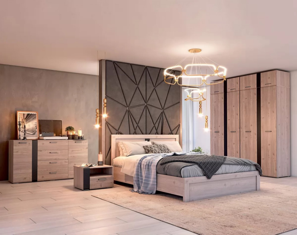 Спальный гарнитур теплых коричнево-кофейных оттенков, идеальный для лаконичных интерьеров. В нем соединяются функциональность и классика линий - для тех, кто предпочитает уют и мягкость в обстановке.