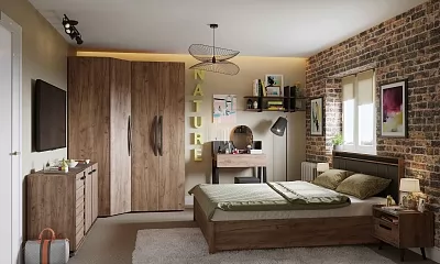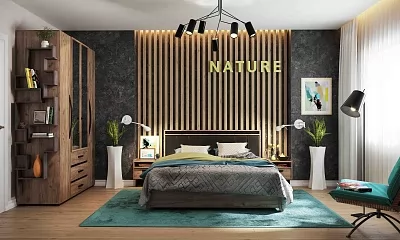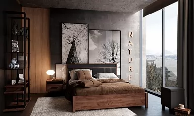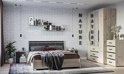 Простые прямые линии, отсутствие сглаженных углов и лишних изгибов придают спальне NATURE особую атмосферу стиля Лофт.