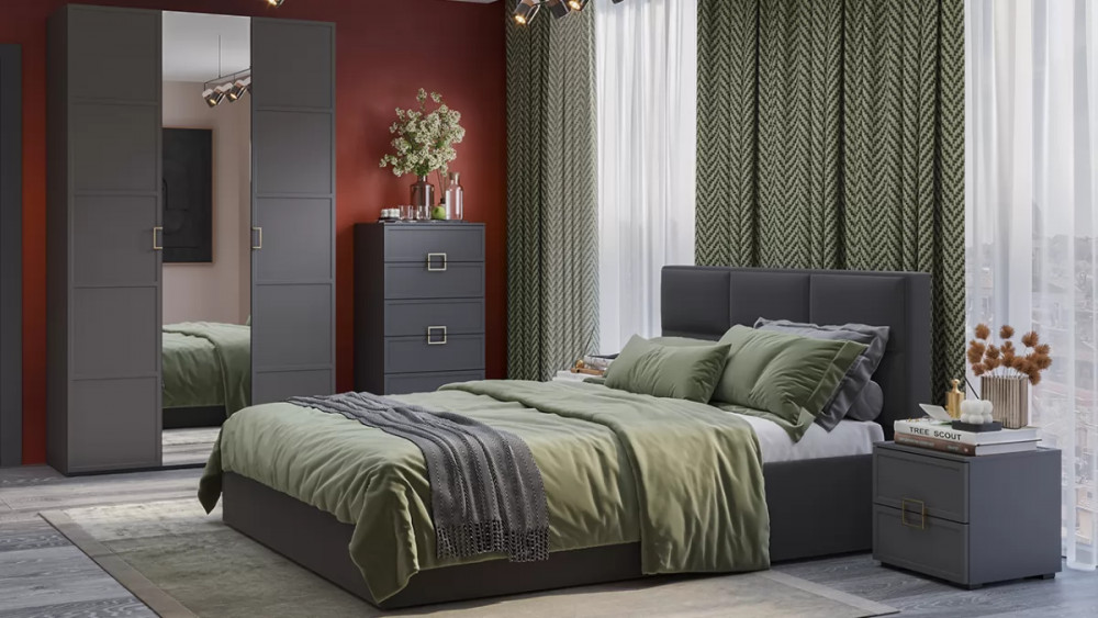 Спальный гарнитур «Стелла» №3 Серый вулкан, Фон серый, Велюр Графит в Мегионе