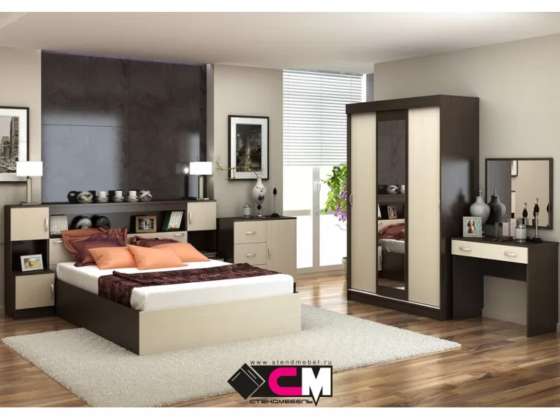 Готовый спальный гарнитур состоит из модулей: