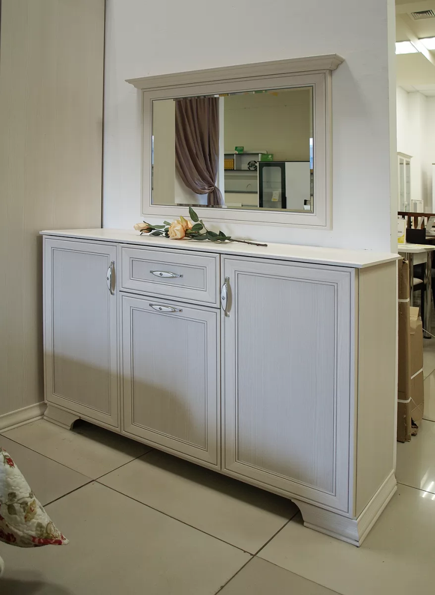 Спальня Венеция – это легкая, «воздушная» и стильная мебель. Коллекция включает кровати, столики и трельяжи, элегантные зеркала и тумбы. Изготовление из ЛДСП обеспечивает надежность, а накладной профиль смотрится красиво и эстетично. Для дополнительного комфорта можно выбрать кровать с ортопедическим основанием. Сборка осуществляется с использованием комплектующих высокого качества: ручек, петель и вставок.