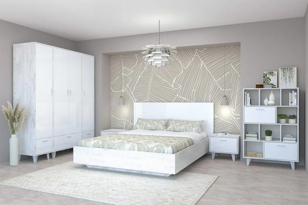 Кровать Эго арт. 031, 1600*2000 мм, бетон светлый/белый глянец 1 шт