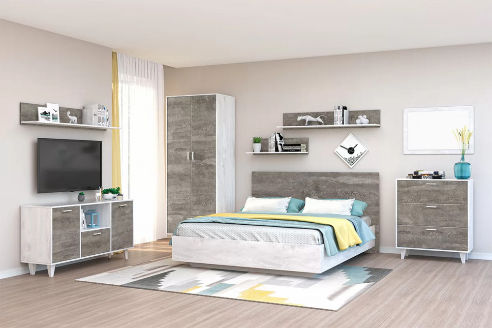 Кровать Эго арт. 031, 1600*2000 мм, бетон светлый/камень темный 1 шт