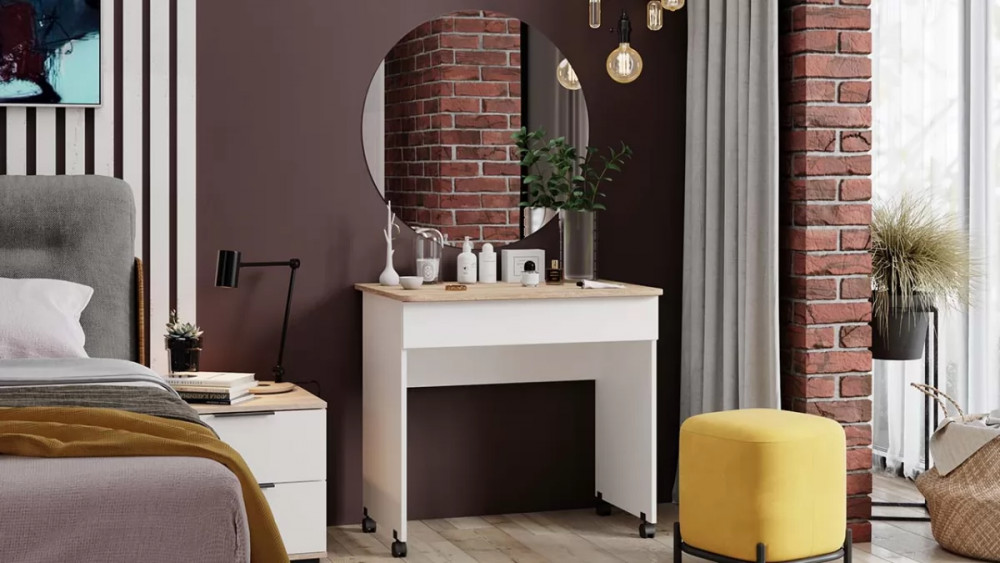 Стол с зеркалом «Diamond» тип 2 Дуб Сонома, Белый Ясень в Мегионе