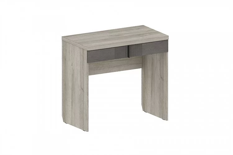 Фасады представлены как в однотонном так и в комбинированном варианте: створки из МДФ 16 мм под пленкой ПВХ. В туалетном столике выдвижные ящики укомплектованы направляющими полного выдвижения. Дно ящика и задняя стенка выполнены из ХДФ, которое вставляется в паз. Фрезерованные крышки из ЛДСП 32 мм облицованы кромкой ПВХ толщиной 1 и 2 мм. Зеркало в овальной форме для туалетного столика комплектуется отдельно.