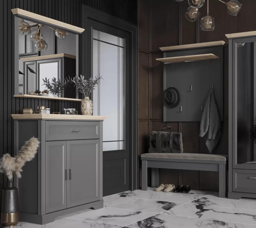 Стилизованные ножки гарантируют устойчивость конструкции. Графитовый цвет привнесет индивидуальности в интерьер.